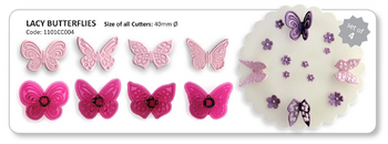 Lacy Butterflies – Set of 4 Gebruiksaanwijzing: plaats de vlinder uitsteker in de roller pad. Rol de gumpaste of mexican paste (50% gumpaste en 50% rolfondant) uit tot een dunne plak en leg deze over de uitsteker heen. Rol hier nogmaals overheen, zodat de vlinder uitgestoken wordt. Verwijder met een needle tool voorzichtig de onderdelen die niet bij de vlinder horen en haal dan de vlinder van de uitsteker. Laat de vlinders goed drogen. Engelstalig instructie bijgesloten.