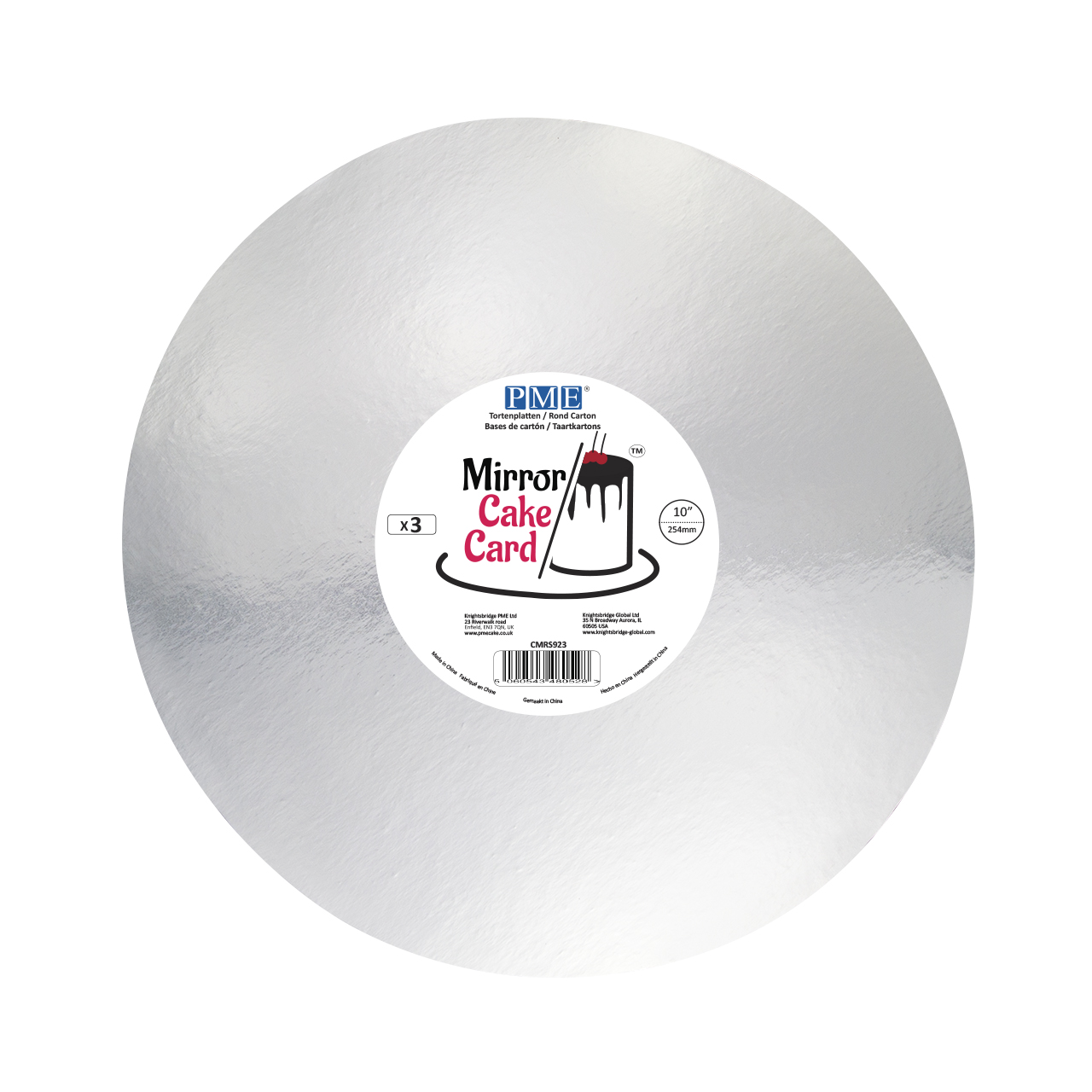 Mirror Cake Card, Round, Silver 25,4 cm, Pk/3 Taart karton van 1 mm