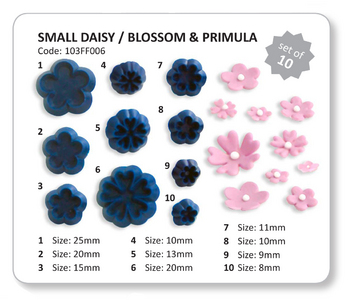 Small Daisy Blossom & Primula – Set of 10 ÿInhoud 10 stuks. Afmeting tussen ca. 1 en 3 cm.ÿ